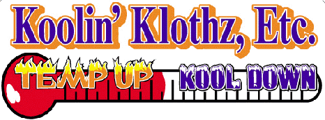 | Cleaning Instructions For the Koolin' Klothz, machine wash or hand wash. Use a small amount of soap. They are like a sponge so be sure to rinse well. Just make sure there are no bubbles coming out of them after you wash them. Fold them into the shape you would like and let them dry. They are very light weight when dried, so you can pack them without them weighing you down. When you need them, just get them wet (hot or cold water), wave them in the air and you are ready to go. You can use Apple Cider Vinegar in the rinse to take out any smells that might tend to linger. Copyright 2001-2018 Koolin' Klothz, Etc. All rights reserved. |